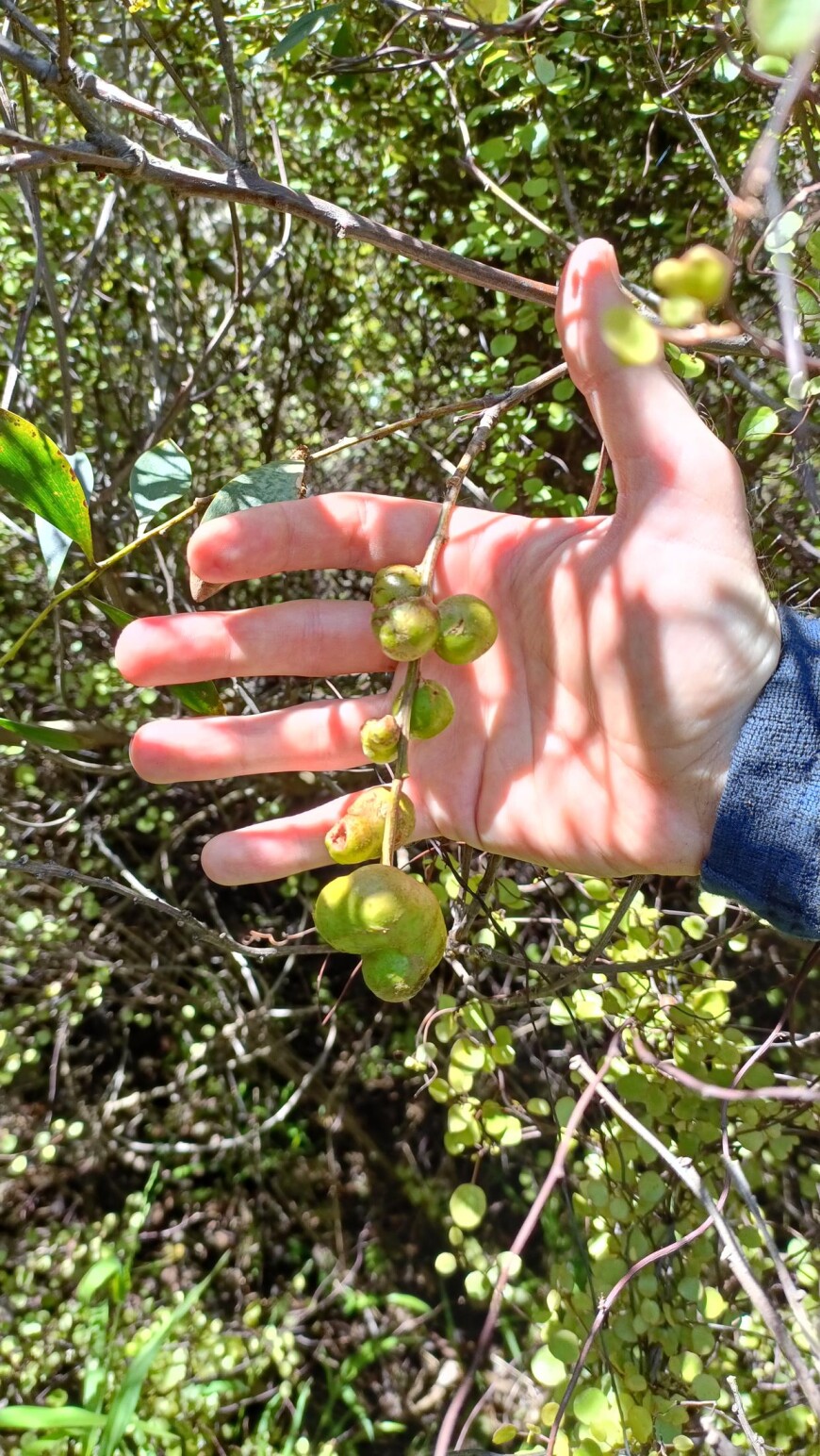 It is too early to collect galls for redistribution, but this will be the easiest way to relocate the wasps just before they emerge in late spring/early summer. When release sites are well established, galls can be collected and introduced to new areas by attaching branches of galls to Sydney golden wattle trees.